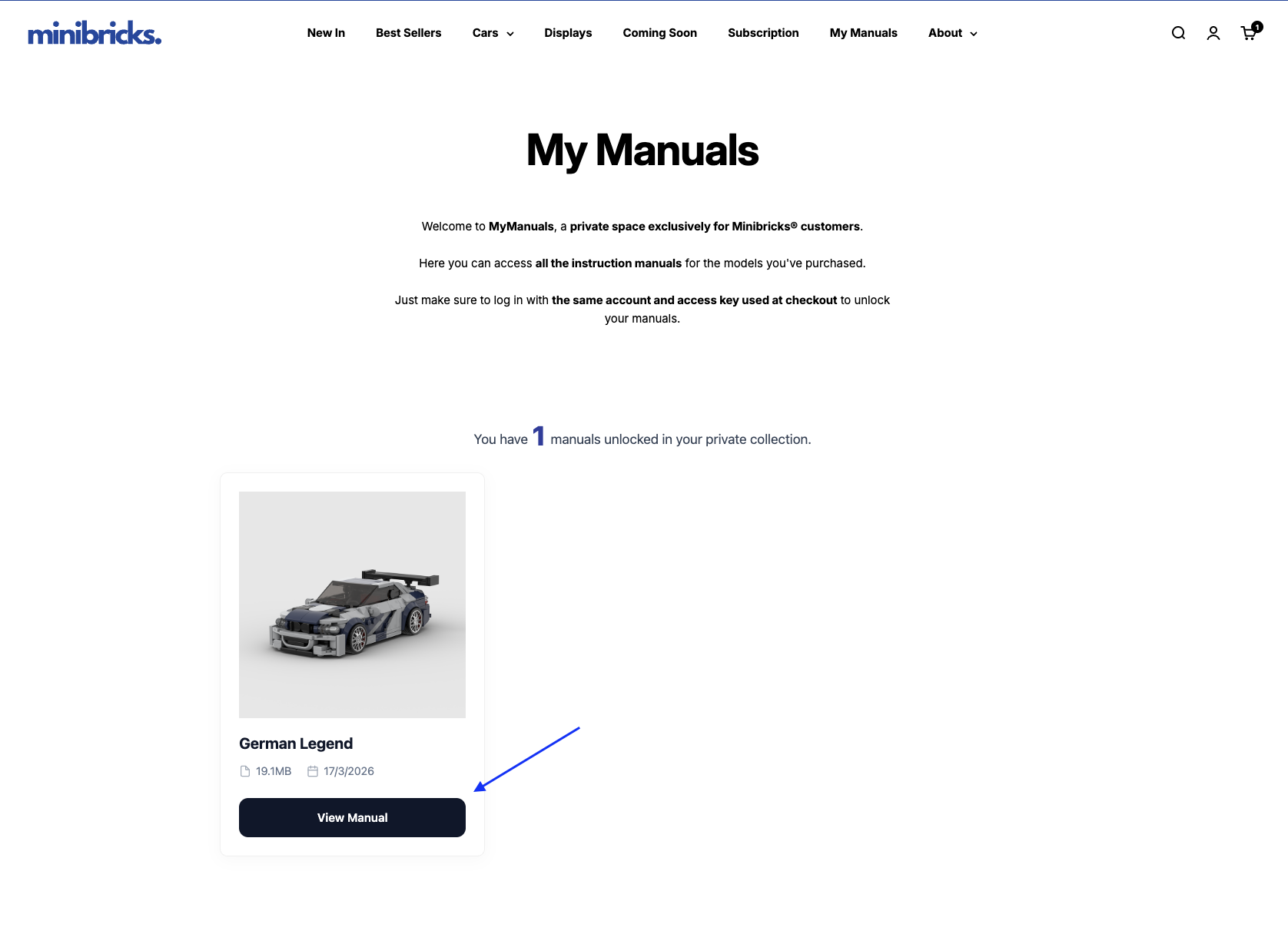 1. Access via My Manuals — log in to your Minibricks account and go to My Manuals to download your instructions directly (available for sets purchased from December 2025 onwards).